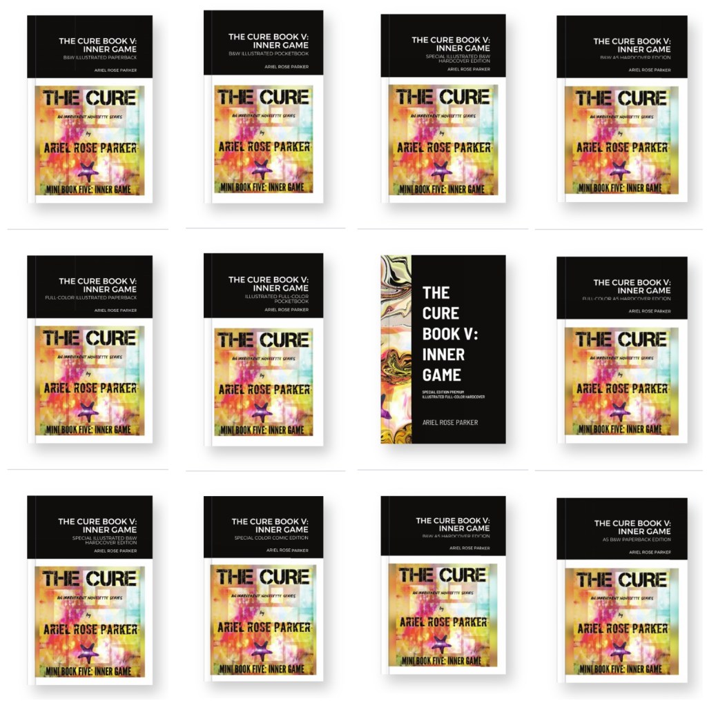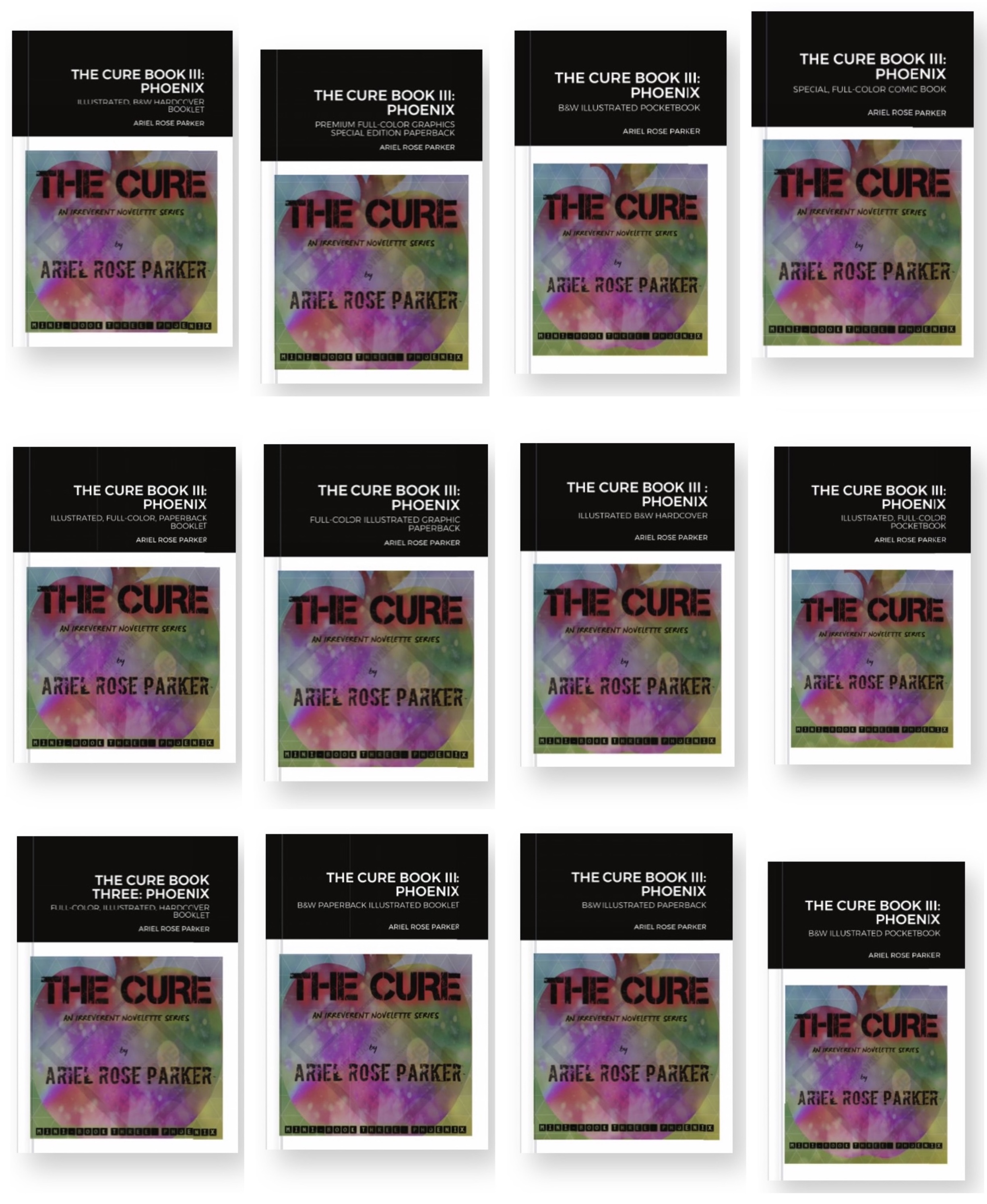 A whole menu of illustrated, special editions of the 3rd mini book in the riveting, irreverent, ongoing novelette series, The Cure, by Ariel Rose Parker. 𓂀 Hardcover, Softcover, Pocketbooks, Booklets, Comics, Full Color, B&W. 𓂀 In the wake of expulsion from her sophomore year at Princeton, a rogue biophysics major creates an empire from a proprietary wonder drug she invented that cures literally any human affliction: from mental and physical health issues to struggles with confidence, love life, money and success. We follow our young lady and her team on the wild, lucrative ride of their dreams as they massively better the lives of billions across the globe. But, all is not quite as it seems. 𓂀 ©2021