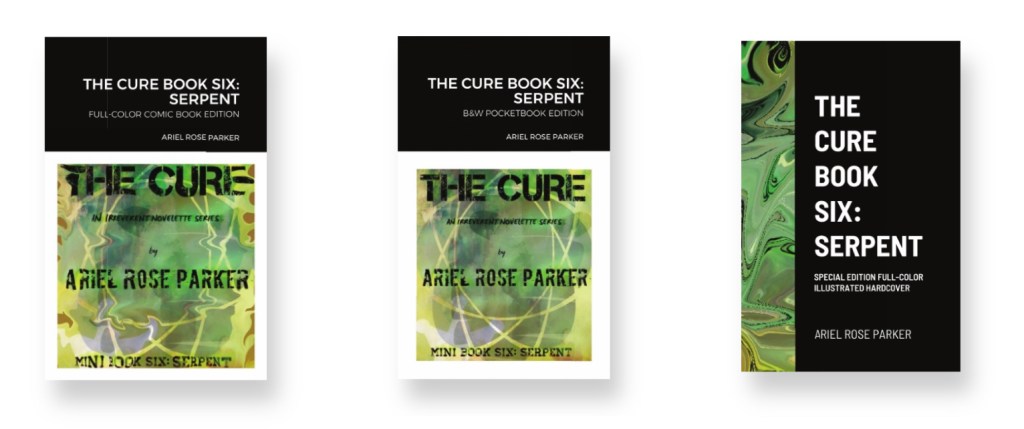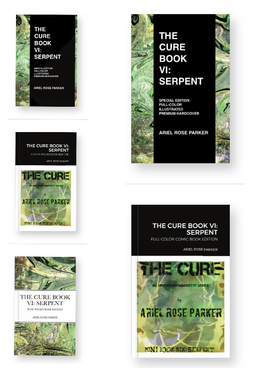 Gorgeous, illustrated, full-color and B&W, pocketbooks, comic books, paperbacks and special-edition hardcovers of the 6th mini book in the riveting, irreverent, ongoing novelette series, The Cure, by Ariel Rose Parker. 🩸𓂀 In the wake of expulsion from her sophomore year at Princeton, a rogue biophysics major creates an empire from a proprietary wonder drug she invented that cures literally any human affliction: from mental and physical health issue to struggles with confidence, love life, money and success. We follow our young lady and her team on the wild, lucrative ride of their dreams as they massively better the lives of billions across the globe. But, all is not quite as it seems.©️